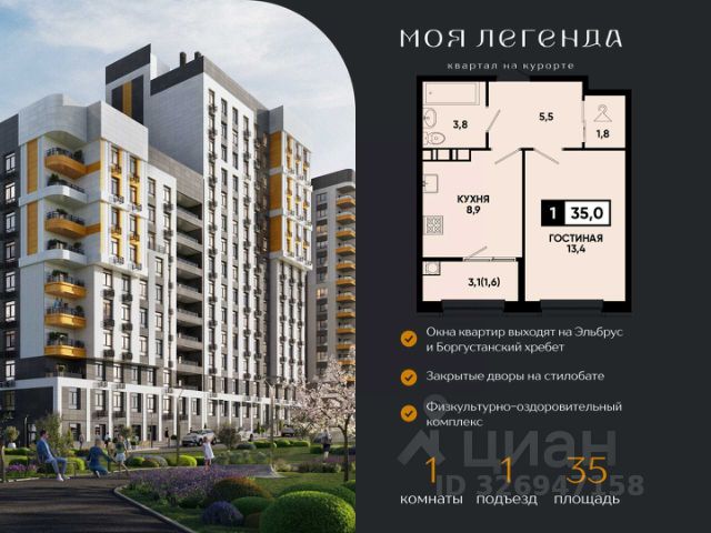 1-комнатная квартира в ЖК "Моя Легенда" — стильное жилье с комфортом, современными решениями и выгодными условиями от надежного застройщика ЮгСтройИнвест. ЖК "Моя Легенда" — это новый жилой комплекс, который сочетает в себе инновационные технологии и удобство жизни. Здесь есть всё для комфортного проживания: современные планировки, умные системы безопасности, закрытые дворы без машин, и развитая инфраструктура. О застройщике: ЮгСтройИнвест — компания, которая уже более 20 лет реализует проекты на Юге России. Мы строим по 214-ФЗ и сдаем дома вовремя, гарантируя высокое качество и заботясь о каждом клиенте. Тысячи семей уже наслаждаются комфортом, который мы создаем. Планировка: — Просторная и светлая 1-комнатная квартира с удобной планировкой; — Зона кухни и просторная гостиная; — Много света и воздуха, большие окна, которые наполняют квартиру солнечным светом. Инфраструктура и комфорт: — Закрытая территория с охраной и видеонаблюдением; — Умные технологии: система домофона с распознаванием лиц, умный подъезд и доступ через приложение; — Высокоскоростной интернет на всей территории комплекса, включая подземный паркинг; — Прекрасные зеленые зоны, прогулочные дорожки, детские и спортивные площадки; — Паркинг с возможностью подземной и многоуровневой парковки. Акции и предложения: Квартира с ремонтом под ключ — скидка до 1 276 500 руб.; Семейная ипотека от 6% — для семей с детьми до 6 лет или детьми-инвалидами; Беспроцентная рассрочка от застройщика; Скидка до 7 000 руб/м² для сотрудников СБЕРБАНКА; Квартира + парковка по выгодной цене. Условия покупки: — Рассрочка на 2 года — удобные условия для покупки; — Ипотека с возможностью использования материнского капитала; — Возможность дистанционной сделки — покупка без личного визита в офис. Почему выбрать ЖК "Моя Легенда": Идеальное расположение — тихий, но удобный район; Современные квартиры с ремонтом от застройщика; Весь комплекс оснащен современными технологиями для удобства жильцов; Удобный подъезд и паркинг — всё для вашего комфорта. Напишите или позвоните — подберем варианты, ответим на вопросы и уточним, какие акции действуют на 1-комнатные квартиры в ЖК "Моя Легенда". Не упустите возможность стать владельцем квартиры в умном жилом комплексе "Моя Легенда"! * Рендеры носят иллюстративный характер и демонстрируют возможный вариант оформления квартиры, не являясь ремонтом от застройщика.