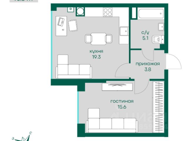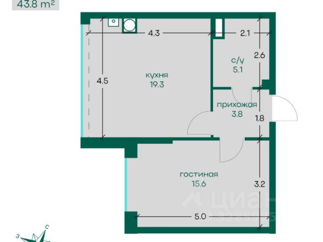 • ✅ Минимальная площадь: 43 м²
