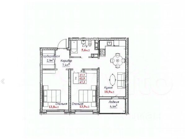 • ✅ Минимальная площадь: 39,6 м²