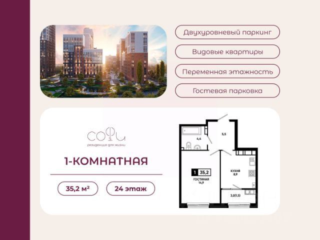 1-комнатная квартира в резиденции "Софи" — приватность, современные технологии и продуманная планировка от федерального застройщика ЮгСтройИнвест! Идеальный вариант для жизни, инвестиций и сдачи в аренду. Возможна сдача квартиры в доверительное управление — стабильный пассивный доход в уникальном ЖК Ставрополя с личным сквером и приватной территорией. О квартире — свет, пространство и удобство: Просторная комната правильной формы; Кухня-гостиная с возможностью зонирования; Балкон с панорамным видом на лес и сквер; Грамотное размещение мокрых зон; Резиденция "Софи" — приватность, комфорт и инфраструктура: — Закрытая территория с личным сквером и площадкой для выгула питомцев; — Тихие прогулочные зоны, газоны для отдыха и йоги; — Игровые и спортивные площадки нового поколения, двор без машин; — Подземный паркинг с видеонаблюдением. — 10 минут пешком до школ, детских садов и ТРЦ; — Коммерческие помещения, магазины и кафе прямо на территории. Застройщик — ЮгСтройИнвест: Мы создаём не просто дома, а полноценные резиденции с продуманной инфраструктурой: скверы, парки, дороги и зоны отдыха. Более 20 лет на рынке недвижимости Юга России; Полное соблюдение ФЗ-214 — безопасная и прозрачная сделка; Тысячи счастливых семей, сотни тысяч м² сдано в срок; Современные технологии и премиальные материалы. Выгодные предложения: Семейная ипотека от 6%; Скидка до 4000 ₽/м² для участников СВО и госслужащих; Рассрочка от застройщика 1 год при ПВ 30% и совместная программа со Сбербанком на 2 года; Возможность погасить часть ПВ материнским капиталом; Условия покупки: — Полное сопровождение по 214-ФЗ; — Дистанционная сделка — удобно из любого города; — Помощь на всех этапах — от выбора квартиры до передачи ключей; — Высокая ликвидность и инвестиционная привлекательность. Свяжитесь с нами! Менеджер подберет оптимальную планировку, рассчитает ипотеку и забронирует вашу 1-комнатную квартиру в резиденции "Софи". Резиденция "Софи" — комфорт, приватность и зелёные зоны в сердце Ставрополя каждый день! * Рендеры носят иллюстративный характер и демонстрируют возможный вариант оформления квартиры, не являясь ремонтом от застройщика.