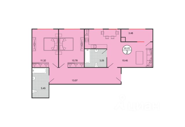 Площадь 36,4 м2.