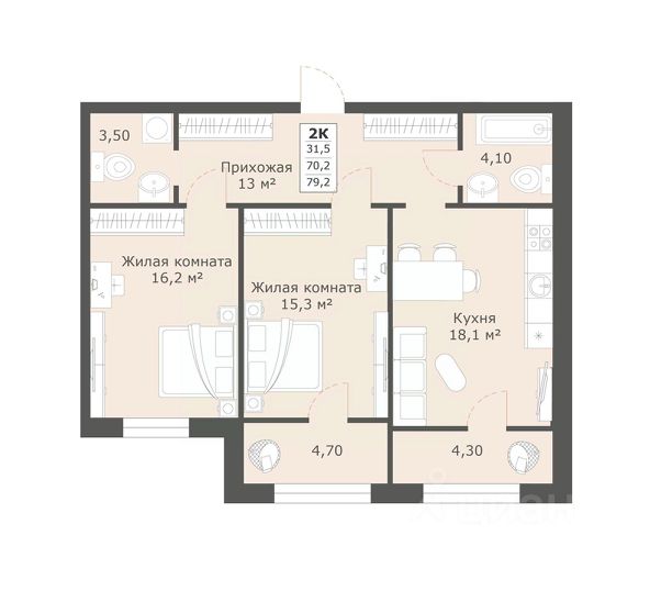 Площадь 36,4 м2.