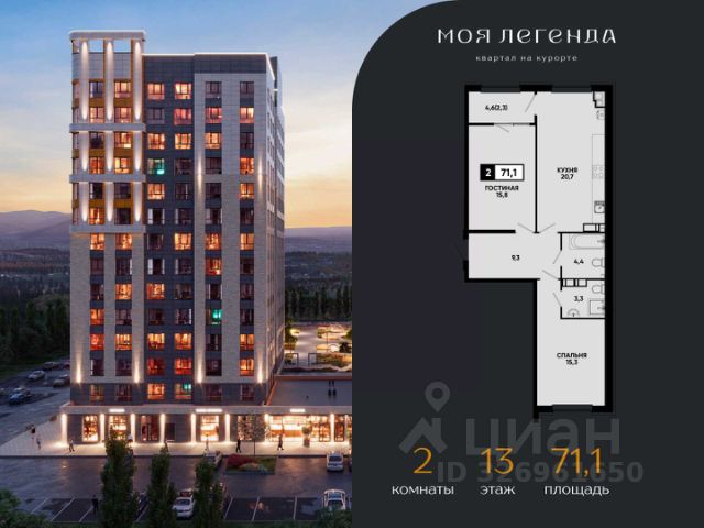 2-комнатная квартира в ЖК "Моя Легенда" — идеальный выбор для комфортной жизни с высокой выгодой от надежного застройщика ЮгСтройИнвест. ЖК "Моя Легенда" — это современный комплекс с передовыми технологиями, обеспечивающий максимальный комфорт и удобство для всех своих жильцов. Квартиры здесь отличаются отличной планировкой, высоким качеством строительства и инновациями, создающими комфортную атмосферу для жизни. О застройщике: ЮгСтройИнвест — один из ведущих девелоперов на Юге России, с более чем 20-летним опытом в строительстве. Мы реализуем проекты по 214-ФЗ, гарантируя своевременную сдачу и высокое качество на всех этапах. Тысячи семей уже наслаждаются комфортом, который мы создаем, а наш подход к благоустройству делает наши кварталы одними из лучших в регионе. Планировка квартиры: — 2-комнатная квартира с функциональной и удобной планировкой; — Просторная кухня-гостиная для семейных обедов и отдыха; — Отдельная спальня для уединения, удобные зоны хранения и большое количество естественного света. Комфорт и инфраструктура ЖК "Моя Легенда": — Закрытая территория с охраной и системой видеонаблюдения; — Умный подъезд с системой распознавания лиц и дистанционным открытием подъезда и паркинга через приложение; — Современные спортивные и детские площадки, а также зеленые зоны для прогулок; — Многоуровневый подземный паркинг и гостевые парковочные места. Специальные предложения и акции: Квартира с ремонтом от застройщика — до 1 276 500 руб. выгоды; Семейная ипотека от 6% для семей с детьми до 6 лет или с детьми-инвалидами; Рассрочка; Скидка до 3% на квартиры для участников СВО и их семей; Скидка до 7 000 руб/м² для сотрудников СБЕРБАНКА при покупке квартиры в ипотеку. Условия покупки: — Ипотека с программами господдержки (семейная, льготная); — Материнский капитал в качестве первоначального взноса; — Возможность дистанционной сделки — удобно для тех, кто не может посещать офис лично; — Официальное оформление по 214-ФЗ. Напишите нам или позвоните — подберем лучшие варианты 2-комнатных квартир в ЖК "Моя Легенда", расскажем о действующих акциях и предложим удобные условия покупки. Не упустите шанс стать владельцем квартиры в ЖК "Моя Легенда" — современное жилье с отличной инфраструктурой и выгодными условиями! Купить 2-комнатную квартиру на 13 этаже в Кисловодске.