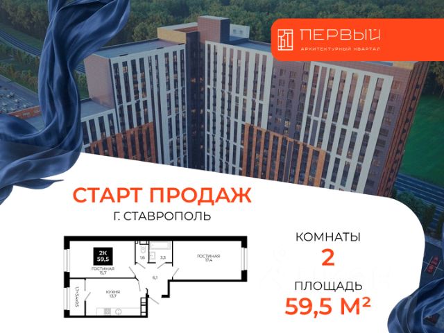 2-комнатная квартира в Архитектурном квартале "Первый" — новый формат жизни в "Новом Ставрополе" Хотите просторную квартиру в современном районе с развитой инфраструктурой и высоким потенциалом роста стоимости? 2-комнатная квартира в АК "Первый" — это комфорт для семьи и выгодная инвестиция в масштабный проект "Новый Ставрополь". Проект реализуется ЮгСтройИнвест — впервые в Ставрополе создан квартал с продуманной концепцией городской тишины и собственной экосистемой. О проекте: — В квартале — 8 домов переменной этажности (1824 этажа) с эффектными вентилируемыми фасадами. — Архитектура вдохновлена горами Кавказа: клинкерный кирпич, керамогранит, искусственный камень и стемалит формируют современный и статусный облик. Из окон открываются панорамные виды на город и природные пейзажи. Планировка 2-комнатной квартиры: — Кухня-гостиная для семейных встреч; — Отдельная спальня и место под гардеробную; — Большие окна с хорошей инсоляцией; — Продуманное зонирование без лишних метров; Подходит для семьи с ребёнком, молодой пары или инвестиций под аренду. Новый формат жизни: Концепция тишины — жилую часть защищают многоуровневые паркинги и общественно-деловые здания вдоль Южного обхода; 18 гектаров озеленения; Парк, 5 тематических скверов, гранд-аллея, бульвары и 8 км велодорожек — самая протяженная прогулочная сеть в Ставрополе; Каждый двор — приватный сквер с авторским ландшафтным дизайном. Инфраструктура "Нового Ставрополя": — 4 школы и 7 детских садов (все в пешей доступности до 15 минут); — 2 поликлиники со станциями скорой помощи; — Спорткомплексы; — Коммерческие помещения на первых этажах; — Гранд-аллея с ресторанами и бутиками; — Двухуровневые паркинги с лифтом (впервые в Ставрополе). Актуальные предложения и акции: Семейная ипотека от 3,5% (Сбербанк) — ставка 3,5% на весь срок при первоначальном взносе 50%; Семейная ипотека 1% в первый год (Альфа-Банк) — 1% годовых в первый год, далее — 6%; IT-ипотека от 6%; Скидка до 4 000 ₽/м² для госслужащих; Скидка до 6 000 ₽/м² участникам СВО и их семьям; Использование материнского капитала для первоначального взноса. Инвестиционный потенциал — "Первый" открывает крупнейший проект "Новый Ставрополь". Развитие инфраструктуры и масштаб застройки формируют рост стоимости недвижимости в перспективе. Условия покупки: — Дистанционная сделка; — Полное сопровождение по 214-ФЗ; — Подбор оптимальной ипотечной программы; — Индивидуальные условия оплаты. Свяжитесь с нами — подберем лучшие планировки 2-комнатных квартир в литерах и рассчитаем вашу персональную выгоду. ЖК "Первый" — пространство для жизни, которое формирует новый Ставрополь. * Рендеры носят иллюстративный характер и демонстрируют возможный вариант оформления квартиры, не являясь ремонтом от застройщика.