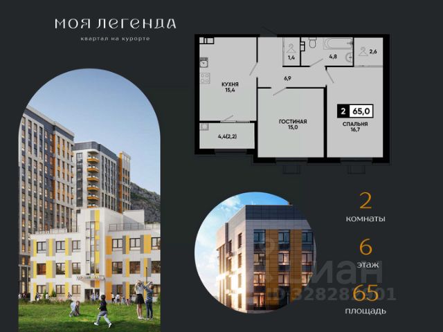 Выгодная покупка на курорте — 2-комнатная квартира в ЖК "Моя Легенда"! Федеральный застройщик "ЮгСтройИнвест" предлагает уникальную предложение. Почему это выгодно прямо сейчас? Ипотека от 6%; Скидка 6 000 ₽/м² для участников СВО; Возможность использовать материнский капитал как первоначальный взнос. Локация, которая работает на вас: ЖК "Моя Легенда" — центр курортной жизни Кисловодска: — Рядом парк и озеро "Моне"; — В шаговой доступности магазины, кафе, аптеки и детские площадки; — Отличная транспортная доступность и инфраструктура. Что вы получаете, выбирая 2-комнатную квартиру в "Моей Легенде": — Просторную планировку для семьи или для аренды; — Полностью готовое жилье — заезжайте и живите; — Сделку напрямую с федеральным застройщиком "ЮгСтройИнвест" — никаких рисков и посредников. Количество квартир ограничено! Не упустите шанс купить ликвидную 2-комнатную квартиру на курорте по выгодной цене прямо сейчас. Звоните и выбирайте свою квартиру в "Моей Легенде"! Бесплатная консультация; Расчет ипотеки и рассрочки; Помощь с оформлением сделки. ГК "ЮгСтройИнвест" — надежный федеральный застройщик, проверенный временем и миллионами квадратных метров по всей стране. Ваш комфорт и выгода — наш приоритет! * Рендеры носят иллюстративный характер и демонстрируют возможный вариант оформления квартиры, не являясь ремонтом от застройщика.