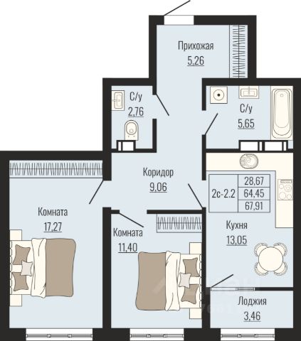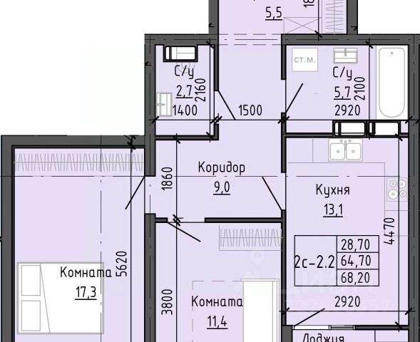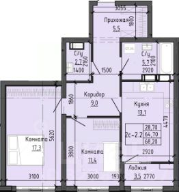 • ✅ Минимальная площадь: 64,3 м²