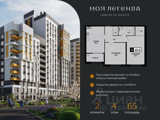 2-комнатная квартира в ЖК "Моя Легенда" — идеальный выбор для комфортной жизни с высокой выгодой от надежного застройщика ЮгСтройИнвест. ЖК "Моя Легенда" — это современный комплекс с передовыми технологиями, обеспечивающий максимальный комфорт и удобство для всех своих жильцов. Квартиры здесь отличаются отличной планировкой, высоким качеством строительства и инновациями, создающими комфортную атмосферу для жизни. О застройщике: ЮгСтройИнвест — один из ведущих девелоперов на Юге России, с более чем 20-летним опытом в строительстве. Мы реализуем проекты по 214-ФЗ, гарантируя своевременную сдачу и высокое качество на всех этапах. Тысячи семей уже наслаждаются комфортом, который мы создаем, а наш подход к благоустройству делает наши кварталы одними из лучших в регионе. Планировка квартиры: — 2-комнатная квартира с функциональной и удобной планировкой; — Просторная кухня-гостиная для семейных обедов и отдыха; — Отдельная спальня для уединения, удобные зоны хранения и большое количество естественного света. Комфорт и инфраструктура ЖК "Моя Легенда": — Закрытая территория с охраной и системой видеонаблюдения; — Умный подъезд с системой распознавания лиц и дистанционным открытием подъезда и паркинга через приложение; — Современные спортивные и детские площадки, а также зеленые зоны для прогулок; — Многоуровневый подземный паркинг и гостевые парковочные места. Специальные предложения и акции: Ипотека — выгодные условия для семей с детьми; Скидка 6 000 ₽/м² для участников СВО — квартира с выгодой для защитников Родины и их семей. Напишите нам или позвоните — подберем лучшие варианты 2-комнатных квартир в ЖК "Моя Легенда", расскажем о действующих акциях и предложим удобные условия покупки. Не упустите шанс стать владельцем квартиры в ЖК "Моя Легенда" — современное жилье с отличной инфраструктурой и выгодными условиями! * Рендеры носят иллюстративный характер и демонстрируют возможный вариант оформления квартиры, не являясь ремонтом от застройщика. Продается 2-комнатная квартира в новостройке без отделки в Кисловодске.