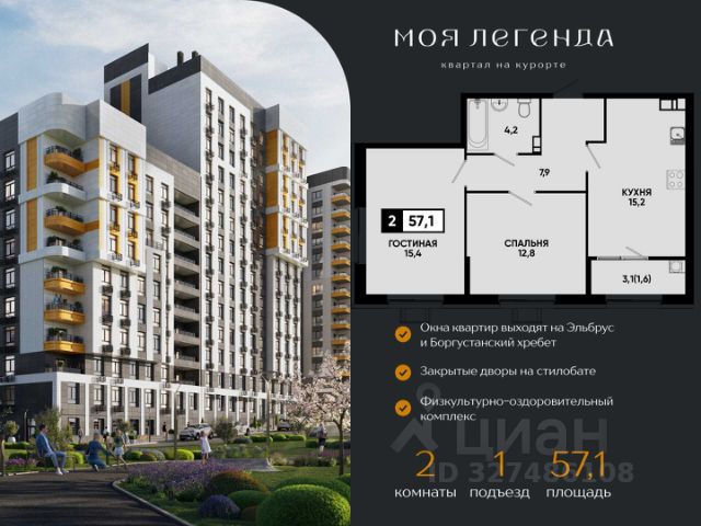 Выгодная покупка на курорте — 2-комнатная квартира в ЖК "Моя Легенда"! Федеральный застройщик "ЮгСтройИнвест" предлагает уникальную возможность: квартира "под ключ" с ремонтом, мебелью и техникой — всё готово к заселению! Почему это выгодно прямо сейчас? Ипотека от 6%; Рассрочка от застройщика — удобные платежи; Возможность использовать материнский капитал как первоначальный взнос. Локация, которая работает на вас: ЖК "Моя Легенда" — центр курортной жизни Кисловодска: — Рядом парк и озеро "Моне"; — В шаговой доступности магазины, кафе, аптеки и детские площадки; — Отличная транспортная доступность и инфраструктура. Что вы получаете, выбирая 2-комнатную квартиру в "Моей Легенде": — Просторную планировку для семьи или для аренды; — Полностью готовое жилье — заезжайте и живите; — Сделку напрямую с федеральным застройщиком "ЮгСтройИнвест" — никаких рисков и посредников. Количество квартир ограничено! Не упустите шанс купить ликвидную 2-комнатную квартиру на курорте по выгодной цене прямо сейчас. Звоните и выбирайте свою квартиру в "Моей Легенде"! Бесплатная консультация; Расчет ипотеки и рассрочки; Помощь с оформлением сделки; ГК "ЮгСтройИнвест" — надежный федеральный застройщик, проверенный временем и миллионами квадратных метров по всей стране. Ваш комфорт и выгода — наш приоритет! * Рендеры носят иллюстративный характер и демонстрируют возможный вариант оформления квартиры, не являясь ремонтом от застройщика. Продается 2-комнатная квартира в новостройке без отделки в Кисловодске.
