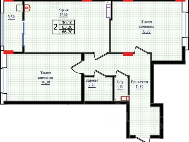 11/17 нового кирпичного дома с Индивидуальным отоплением! Дом стоит вдоль красной линии, удобная транспортная доступность и развязка!