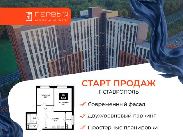 1-комнатная квартира в клубном квартале "Основа" — комфорт, удобство и современная жизнь в сердце Ставрополя от надежного застройщика ЮгСтройИнвест!