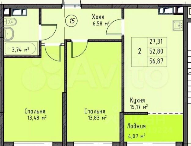 • ✅ Минимальная площадь: 57 м²