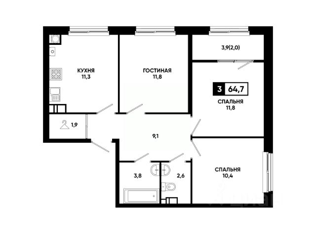 • ✓ В базе Циан 42 3-комнатных квартир на 11 этаже в районе Промышленный в городе Ставрополь