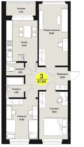 • ✅ Минимальная площадь: 87,8 м²