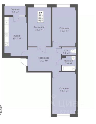 • ✅ Минимальная площадь: 66,4 м²