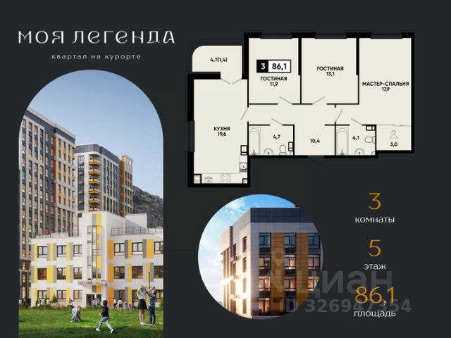 3комнатная квартира в ЖК "Моя Легенда" — курортная жизнь с готовым ремонтом от федерального застройщика ЮгСтройИнвест! Представляем просторную 3комнатную квартиру в уникальном курортном квартале "Моя Легенда" — идеальный вариант для семьи, инвестиций и комфортного проживания на курорте. О квартире — продумано для семьи: Три отдельные комнаты — спальни, гостиная и кухня, чтобы каждый член семьи имел личное пространство; Панорамные окна высотой 2,2 м наполняют квартиру естественным светом и открывают виды на Эльбрус, Боргустанский хребет и Новое озеро; Удобное расположение мокрых зон облегчает монтаж техники и экономит бюджет на ремонте; Просторная кухня-гостиная позволяет организовать обеденную зону и место для отдыха всей семьи; Квартира с готовым ремонтом под ключ, мебелью; Идеальная планировка для жизни, сдачи в аренду или инвестиций. ЖК "Моя Легенда" — курортная недвижимость премиум-класса: — 21 дом переменной этажности (914 этажей) на территории более 15 га; — Закрытые дворы на стилобате с концепцией "без машин", детские и спортивные зоны, лаунж-зоны; — Подземный и наземный паркинг, парковка по цене квартиры и рассрочка 0%; — Холлы с дизайнерской отделкой, стеклянные двери, керамогранит премиум-класса и подсветка; — Коммерческие помещения на стилобате — магазины, кафе, салоны красоты; — Собственный детский сад и физкультурно-оздоровительный комплекс на территории. О застройщике — ЮгСтройИнвест: Мы создаём не просто дома, а полноценные городские кластеры с инфраструктурой под ключ: школы, детские сады, дороги, парки, зоны отдыха и коммерческие объекты. Надежность подтверждена: Более 20 лет работы на рынке недвижимости Юга России; Полное соблюдение ФЗ-214 — прозрачность каждой сделки; Сотни тысяч кв. метров сдано строго в срок; Стандарты качества — от фундамента до благоустройства; Девелопер, создающий удобную среду для жизни и инвестиций. Локация и преимущества: — Новое озеро, гора Кольцо и центр города в шаговой доступности; — Парковые зоны, прогулочные маршруты, спортивные и развлекательные локации; — Вид на Эльбрус, Боргустанский хребет и Новое озеро; — Отличная транспортная доступность и удобные выезды. Акции и выгодные предложения: Квартира с ремонтом под ключ, мебелью и техникой в подарок — стоимость до 2,6 млн ₽; Ипотека от 6% — семейная, для ИТ- специалистов и госслужащих; Рассрочка от застройщика с ПВ от 30%; Скидка молодоженам на квартиры; Ипотека без первого взноса; Возможность использовать материнский капитал; Квартира с парковкой по цене квартиры — выгода до 1,4 млн ₽; Траншевая ипотека; Условия покупки: — Дистанционная сделка — удобно для тех, кто не может посетить офис лично; — Полное оформление по 214-ФЗ; — Сопровождение сделки от выбора квартиры до передачи ключей; — Инвестиционная привлекательность. Оставьте заявку прямо сейчас — менеджер подберет планировку, рассчитает ипотеку и забронирует вашу квартиру. 3комнатная квартира в ЖК "Моя Легенда" — курортная жизнь, готовый ремонт и комфортные