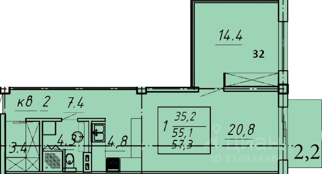 • ✅ Объект наибольшей площади: 68,6 м²