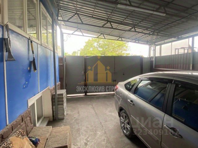 Двор облагорожен брусчаткой, сделан навес для нескольких автомобилей.