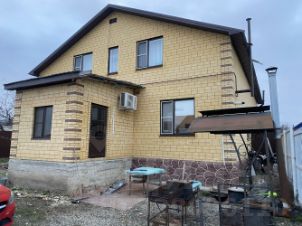 — стены из пеплоблока, облицовка персиковым дагестанским камнем;