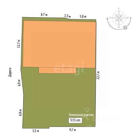 Участок 11 соток включает в себя : широкий фасад с капитальным кирпичным забором и автоматическими воротами , место под 3-4 авто , закрытый отапливаемый гараж для 4 авто, выделенные зеленые зоны для насаждений и декоративных растений ( место для бассейна ) , большая задняя летняя и крытая терраса с мангальной зоной и летней кухней .