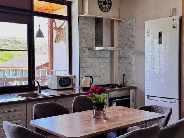 В ДОМЕ ОСТАЁТСЯ - кухонный гарнитур с встроенной техникой, стол, стулья, холодильник, стиральная машина, кровать, оборудованная гардеробная.
