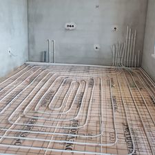 — тёплые полы по всему первому этажу, независимые контуры;