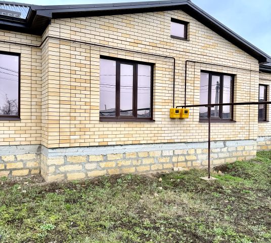 — стены из пеплоблока, облицовка персиковым дагестанским камнем;