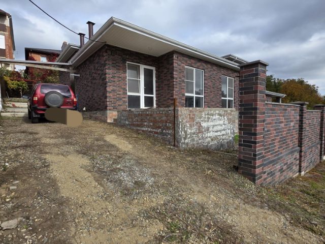 Толщинa стен 2 киpпича + утeплитeль. Becь дом, забор облицован Дагеcтанcким кaмнeм.