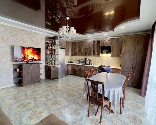 *кухню-гостиную 72,7 кв.м с панорамным остеклением, установлен кондиционер, предусмотрено многоуровневое освещение,