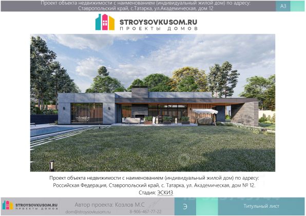Эксклюзивное предложение! Новый строящийся дом в экологически чистом лесном пригороде Ставрополя. Уникальное расположение в шаговой доступности от мужского монастыря иконы Пресвятой Богородицы и святого источника гарантирует исключительную атмосферу умиротворения и покоя. Авторский проект разработан ведущим архитектором Юга России, готов дизайн-проект интерьеров под ключ. ОСНОВНОЙ ДОМ (279,1 м²) • Просторная кухня-гостиная: 74 м² с панорамными раздвижными витражами и выходом на террасу •Терраса: 30 м², объединена с гостиной в единое световое пространство •Спальни: 3 изолированные спальни •Санузлы: 3 современных санузла •Дополнительные помещения: 2 гардеробные, кабинет - зимний сад, постирочная, котельная •Коммуникации: Электричество, канализация, ливневый водоотвод — все работы выполнены в строгом соответствии с проектом ВТОРОЙ ДОМ (ГОСТЕВОЙ/ТЕХНИЧЕСКИЙ, 84,4 м²) • Комплекс отдыха: Парная (9 м²), приватный бассейн (10 м²), просторная зона отдыха (30 м²) •Инфраструктура: Кухня, 2 санузла, выход на лаундж-зону (7 м²) •Техническое оснащение: В подвале (70 м²) размещено всё инженерное оборудование для обслуживания основного дома и уличного бассейна БЛАГОУСТРОЙСТВО ТЕРРИТОРИИ (20.56 соток) • Открытый бассейн: Композитный, размером 10x4 м, с полным комплектом оборудования •Зона барбекю: Профессиональная площадка 30 м² с мангалом и печью •Парковка: Гараж на 1 авто (30 м²) + два крытых машиноместа •Хранение: Две удобные кладовые по 6 м² каждая ИНФРАСТРУКТУРА И ЛОКАЦИЯ • Развитая инфраструктура: Рядом торговые комплексы Лента и Космос •Отличная транспортная доступность: Удобный выезд в любом направлении • До центра: 20-25 мин • До Северо-Запада: 25 мин • До Юго-Запада: 7 мин •Идеальный баланс: Уединенная жизнь на лоне природы в сочетании с полным городским комфортом Ключевые преимущества: • Эксклюзивная архитектура и готовый дизайн-проект •Продуманная инфраструктура для жизни и отдыха (2 дома, 2 бассейна, парная) • Дом оборудован сигнализацией, датчиками движения, на вскрытия и тд. находится под вневедомственной охраной. •Удачное расположение с безупречной транспортной логистикой Для серьёзных покупателей готов предоставить полный пакет документов и организовать приватный просмотр.