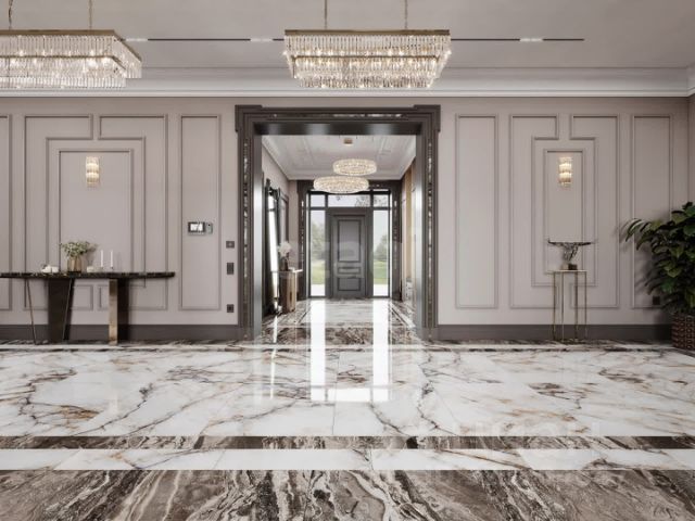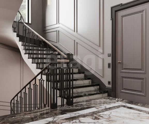 * Особое внимание заслуживает лестница из мрамора с витражным окном и подсветкой. Даже самые требовательные персоны оценят этот благородный подъем на второй этаж.