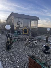 На территории построен 2х эт. дом - из машукского камня, есть кухня, видеонаблюдение.
