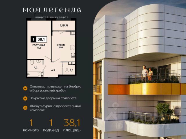 1-комнатная квартира в ЖК "Моя Легенда" — стильное жилье с комфортом, современными решениями и выгодными условиями от надежного застройщика ЮгСтройИнвест. ЖК "Моя Легенда" — это новый жилой комплекс, который сочетает в себе инновационные технологии и удобство жизни. Здесь есть всё для комфортного проживания: современные планировки, умные системы безопасности, закрытые дворы без машин, и развитая инфраструктура. О застройщике: ЮгСтройИнвест — компания, которая уже более 20 лет реализует проекты на Юге России. Мы строим по 214-ФЗ и сдаем дома вовремя, гарантируя высокое качество и заботясь о каждом клиенте. Тысячи семей уже наслаждаются комфортом, который мы создаем. Планировка: — Просторная и светлая 1-комнатная квартира с удобной планировкой; — Зона кухни и просторная гостиная; — Много света и воздуха, большие окна, которые наполняют квартиру солнечным светом. Инфраструктура и комфорт: — Закрытая территория с охраной и видеонаблюдением; — Умные технологии: система домофона с распознаванием лиц, умный подъезд и доступ через приложение; — Высокоскоростной интернет на всей территории комплекса, включая подземный паркинг; — Прекрасные зеленые зоны, прогулочные дорожки, детские и спортивные площадки; — Паркинг с возможностью подземной и многоуровневой парковки. Акции и предложения: Квартира с ремонтом под ключ — скидка до 1 276 500 руб.; Семейная ипотека от 6% — для семей с детьми до 6 лет или детьми-инвалидами; Беспроцентная рассрочка от застройщика; Скидка до 7 000 руб/м² для сотрудников СБЕРБАНКА; Квартира + парковка по выгодной цене. Условия покупки: — Рассрочка на 2 года — удобные условия для покупки; — Ипотека с возможностью использования материнского капитала; — Возможность дистанционной сделки — покупка без личного визита в офис. Почему выбрать ЖК "Моя Легенда": Идеальное расположение — тихий, но удобный район; Современные квартиры с ремонтом от застройщика; Весь комплекс оснащен современными технологиями для удобства жильцов; Удобный подъезд и паркинг — всё для вашего комфорта. Напишите или позвоните — подберем варианты, ответим на вопросы и уточним, какие акции действуют на 1-комнатные квартиры в ЖК "Моя Легенда". Не упустите возможность стать владельцем квартиры в умном жилом комплексе "Моя Легенда"! * Рендеры носят иллюстративный характер и демонстрируют возможный вариант оформления квартиры, не являясь ремонтом от застройщика. Купить квартиру площадью примерно 40 м2 (кв.м.) в Кисловодске.