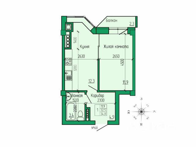- Квартиры с высотой потолков 3,3 м. - 3,6 м.
