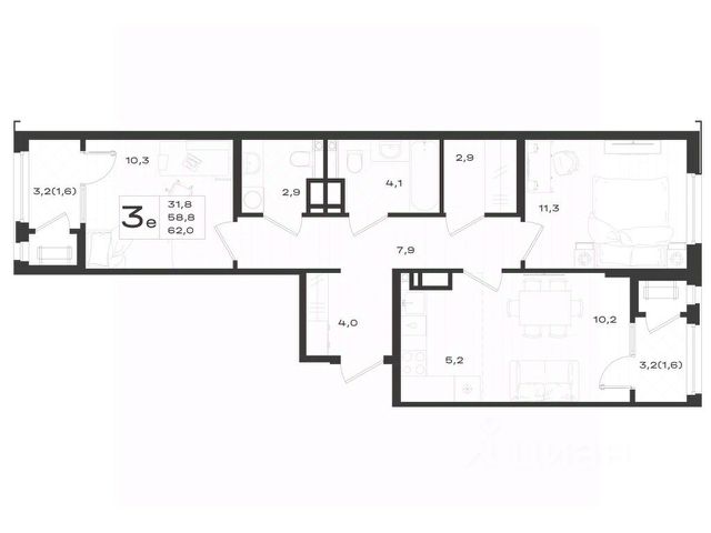 В продаже 3-комнатная квартира квартира площадью 59.30 кв. м, расположенная на 12 этаже, в новом жилом комплексе "Лермонтов Парк". Квартира сдается с черновой отделкой. Проект от застройщика PARADE Development находится в Ставропольском крае, на территории поселка Джуца, в окружении развитой курортной инфраструктуры. Жилой комплекс "Лермонтов Парк" в Ставропольском крае - это уникальный проект, объединяющий в себе богатые природные ресурсы Кавказа, хорошую транспортную доступность и близость к развитой городской инфраструктуре. Дома переменной этажности с множеством эргономичных планировок и потрясающими видами на доминанты Пятигорска и горный рельеф. Транспортная доступность • Остановка общественного транспорта в шаговой доступности. • 10-12 км от центра Пятигорска - ключевого делового, торгового и логистического центра Кавказских Минеральных Вод. • Прямой выезд к магистрали на улице Ореховой обеспечивает быстрый доступ к курорту на Ессентуках. • Гора Дубровка и Армянский лесной массив в 8-13 минутах на автомобиле. Архитектура, вдохновленная природой В составе проекта "Лермонтов Парк" возводится 7 литеров переменной этажности от 12 до 15 этажей. "Мокрый" фасад, светлые и теплые цветовые решения, ритмичное чередование ярких оттенков и оптимальный уровень остекления - каждая деталь жилого комплекса формирует динамичный и запоминающийся образ. Ландшафтное благоустройство На территории приватного двора "Лермонтов Парк" будут высажены деревья и кустарники, обустроены спортивные, детские и прогулочные площадки. Отдельно расположится парковка, зона тихого отдыха, парковое пространство. Около 50% детских площадок займет озеленение. Инфраструктура Просторный паркинг на 1758 машино-мест. Большая парковая зона с велосипедными и прогулочными дорожками. Стильные входные группы, оборудованные пандусами и понижающими площадками для маломобильных жителей. Туристические базы, центр города и живописные маршруты в окружении гор - в пределах 15-25 минут на машине.