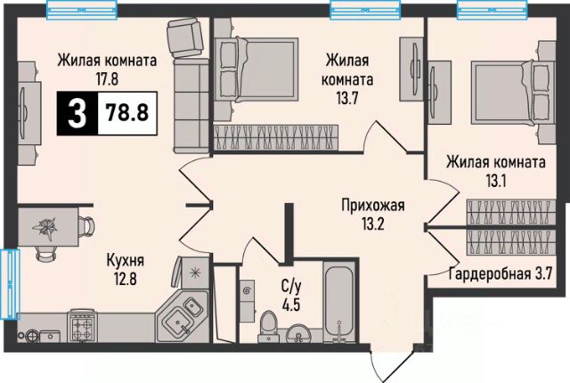 Продаётся 3-комнатная квартира в строящемся доме (7 очередь 1 этап), срок сдачи: III-кв. 2026, общей площадью 78.8 кв.м., на 2 этаже. Новый жилой комплекс "Живописный" расположен на территории Кавказских Минеральных Вод, рядом с основными курортными городами (Железноводск, Пятигорск, Ессентуки, Кисловодск) и горнолыжными курортами соседних республик. Насладиться головокружительными видами и активным отдыхом можно в соседних регионах: в Карачаево-Черкессии (на горнолыжных курортах Архыз и Домбай) или в Кабардино-Балкарии (в Приэльбрусье, побывав на г.Эльбрус). А из Международного аэропорта Минеральные Воды имени М. Ю. Лермонтова, расположенного в 20 минутах езды, можно улететь более чем по 30 внутренним и международным направлениям. ЖК "Живописный": Атмосфера: комплекс расположен в экологически чистом районе, органично вписываясь в окружающий ландшафт с колоритной природой и потрясающими видами.Отлаженная инфраструктура: образовательные учреждения, объекты здравоохранения, транспортные узлы, кафе и магазины находятся в шаговой доступности.Большой выбор квартир разной площади: улучшенные форматы квартир помогут воплотить в жизнь любые дизайнерские идеи и функциональные решения.Индивидуальное отопление позволит вам самостоятельно регулировать температурный режим, включать и отключать систему в любое время года.Проектом предусмотрены коммерческие помещения на первых этажах всех корпусов с целью развития и улучшения качества инфраструктуры. Для вашего удобства организованы наземная парковка и просторные кладовые помещения, вынесенные за пределы квартир.Придомовая территория включает благоустроенные зоны отдыха, детские игровые и воркаут-площадки. Огороженный двор и системы наблюдения обеспечат приватность и безопасность проживания.Более подорбную информацию о строительстве жилого комплека можно узнать на сайте застройщика
