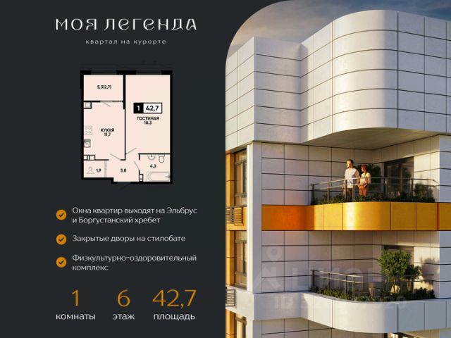 1комнатная квартира в ЖК "Моя Легенда" — курортная жизнь с готовым ремонтом от федерального застройщика ЮгСтройИнвест! Представляем уютную 1комнатную квартиру в уникальном курортном квартале "Моя Легенда" с продуманной планировкой, которая идеально подходит для жизни, отдыха и инвестиций. О квартире — комфорт и функциональность: Светлая комната с объединенной кухней-гостиной и зоной для сна; Панорамные окна высотой 2,2 м открывают вид на Эльбрус, Боргустанский хребет и Новое озеро; Удобное расположение мокрых зон для техники и экономии бюджета на ремонте; Идеальная планировка для проживания, сдачи в аренду или инвестиций; Квартира с готовым ремонтом под ключ, мебелью и техникой. ЖК "Моя Легенда" — курортный комплекс: — 21 дом переменной этажности (914 этажей) на территории более 15 га; — Закрытые дворы на стилобате с концепцией "без машин", детские и спортивные зоны, лаунж-зоны; — Подземный и наземный паркинг; — Холлы с дизайнерской отделкой, стеклянные двери, керамогранит премиум-класса, подсветка; — Коммерческие помещения на стилобате: магазины, кафе, салоны красоты; — Собственный детский сад и физкультурно-оздоровительный комплекс. О застройщике — ЮгСтройИнвест: Мы создаём не просто дома, а полноценные городские кластеры с инфраструктурой под ключ: школы, детские сады, дороги, парки и коммерческие объекты. Надежность подтверждена: Более 20 лет работы на рынке недвижимости Юга России; Полное соблюдение ФЗ-214 — прозрачность каждой сделки; Сотни тысяч кв. метров сдано строго в срок; Высокие стандарты качества — от фундамента до благоустройства; Девелопер, создающий среду для жизни и инвестиций. Локация и преимущества: — Новое озеро, гора Кольцо и центр города в шаговой доступности; — Парковые зоны, прогулочные маршруты, спортивные и развлекательные локации; — Вид на Эльбрус, Боргустанский хребет и Новое озеро; — Удобная транспортная доступность и выезды. Акции и выгодные предложения: Ипотека от 6% — семейная, для ИТ- специалистов и госслужащих; Рассрочка от застройщика с ПВ от 30%; Скидка молодоженам на квартиры; Ипотека без первого взноса; Возможность использовать материнский капитал; Квартира с парковкой по цене квартиры — выгода до 1,4 млн ₽; Траншевая ипотека; Условия покупки: — Дистанционная сделка — удобно для тех, кто не может посетить офис лично; — Полное оформление по 214-ФЗ; — Сопровождение сделки от выбора квартиры до передачи ключей; — Инвестиционная привлекательность. Заполните заявку сейчас — наш менеджер подберет оптимальную планировку, рассчитает ипотеку и забронирует вашу студию. ЖК "Моя Легенда" — курортная жизнь с видом на Эльбрус, готовый ремонт и комфортные условия покупки! * Рендеры носят иллюстративный характер и демонстрируют возможный вариант оформления квартиры, не являясь ремонтом от застройщика.