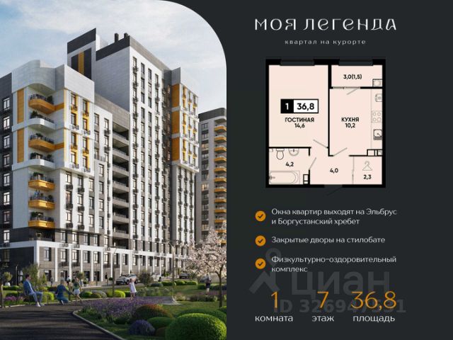 1-комнатная квартира в ЖК "Моя Легенда" — стильное жилье с комфортом, современными решениями и выгодными условиями от надежного застройщика ЮгСтройИнвест. ЖК "Моя Легенда" — это новый жилой комплекс, который сочетает в себе инновационные технологии и удобство жизни. Здесь есть всё для комфортного проживания: современные планировки, умные системы безопасности, закрытые дворы без машин, и развитая инфраструктура. О застройщике: ЮгСтройИнвест — компания, которая уже более 20 лет реализует проекты на Юге России. Мы строим по 214-ФЗ и сдаем дома вовремя, гарантируя высокое качество и заботясь о каждом клиенте. Тысячи семей уже наслаждаются комфортом, который мы создаем. Планировка: — Просторная и светлая 1-комнатная квартира с удобной планировкой; — Зона кухни и просторная гостиная; — Большие окна, которые наполняют квартиру солнечным светом. Инфраструктура и комфорт: — Закрытая территория с охраной и видеонаблюдением; — Умные технологии: система домофона с распознаванием лиц, умный подъезд и доступ через приложение; — Высокоскоростной интернет на всей территории комплекса, включая подземный паркинг; — Прекрасные зеленые зоны, прогулочные дорожки, детские и спортивные площадки; — Паркинг с возможностью подземной и многоуровневой парковки. Акции и предложения: Ипотека со ставкой от 6% — выгодные условия для семей с детьми; Скидка 6 000 ₽/м² для участников СВО — квартира с выгодой для защитников Родины и их семей. Условия покупки: — Ипотека с возможностью использования материнского капитала; — Возможность дистанционной сделки — покупка без личного визита в офис. Почему выбрать ЖК "Моя Легенда": Идеальное расположение — тихий, но удобный район; Весь комплекс оснащен современными технологиями для удобства жильцов; Удобный подъезд и паркинг — всё для вашего комфорта. Напишите или позвоните — подберем варианты, ответим на вопросы и уточним, какие акции действуют на 1-комнатные квартиры в ЖК "Моя Легенда". Не упустите возможность стать владельцем квартиры в умном жилом комплексе "Моя Легенда"! * Рендеры носят иллюстративный характер и демонстрируют возможный вариант оформления квартиры, не являясь ремонтом от застройщика.