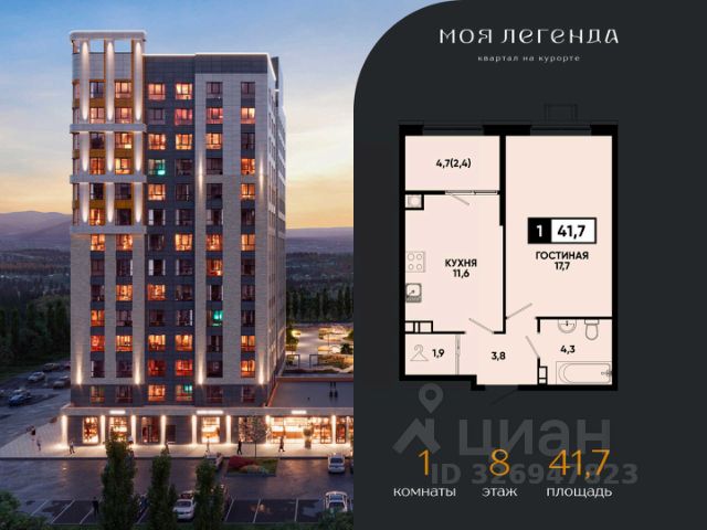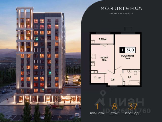 1-комнатная квартира в ЖК "Моя Легенда" — стильное жилье с комфортом, современными решениями и выгодными условиями от надежного застройщика ЮгСтройИнвест. ЖК "Моя Легенда" — это новый жилой комплекс, который сочетает в себе инновационные технологии и удобство жизни. Здесь есть всё для комфортного проживания: современные планировки, умные системы безопасности, закрытые дворы без машин, и развитая инфраструктура. О застройщике: ЮгСтройИнвест — компания, которая уже более 20 лет реализует проекты на Юге России. Мы строим по 214-ФЗ и сдаем дома вовремя, гарантируя высокое качество и заботясь о каждом клиенте. Тысячи семей уже наслаждаются комфортом, который мы создаем. Планировка: — Просторная и светлая 1-комнатная квартира с удобной планировкой; — Зона кухни и просторная гостиная; — Много света и воздуха, большие окна, которые наполняют квартиру солнечным светом. Инфраструктура и комфорт: — Закрытая территория с охраной и видеонаблюдением; — Умные технологии: система домофона с распознаванием лиц, умный подъезд и доступ через приложение; — Высокоскоростной интернет на всей территории комплекса, включая подземный паркинг; — Прекрасные зеленые зоны, прогулочные дорожки, детские и спортивные площадки; — Паркинг с возможностью подземной и многоуровневой парковки. Акции и предложения: Квартира с ремонтом под ключ — скидка до 1 276 500 руб.; Семейная ипотека от 6% — для семей с детьми до 6 лет или детьми-инвалидами; Беспроцентная рассрочка от застройщика; Скидка до 7 000 руб/м² для сотрудников СБЕРБАНКА; Квартира + парковка по выгодной цене. Условия покупки: — Рассрочка на 2 года — удобные условия для покупки; — Ипотека с возможностью использования материнского капитала; — Возможность дистанционной сделки — покупка без личного визита в офис. Почему выбрать ЖК "Моя Легенда": Идеальное расположение — тихий, но удобный район; Современные квартиры с ремонтом от застройщика; Весь комплекс оснащен современными технологиями для удобства жильцов; Удобный подъезд и паркинг — всё для вашего комфорта. Напишите или позвоните — подберем варианты, ответим на вопросы и уточним, какие акции действуют на 1-комнатные квартиры в ЖК "Моя Легенда". Не упустите возможность стать владельцем квартиры в умном жилом комплексе "Моя Легенда"! * Рендеры носят иллюстративный характер и демонстрируют возможный вариант оформления квартиры, не являясь ремонтом от застройщика.