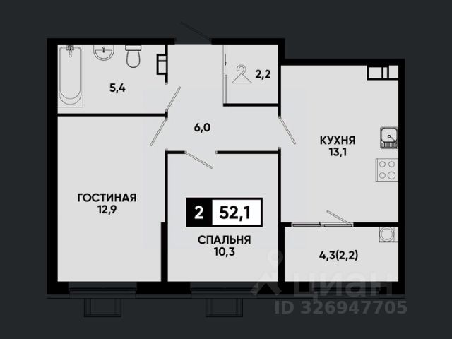 В ЖК "Звезда" города-курорта Кисловодска продаётся однокомнатная квартира общей площадью 48.5 кв.м.