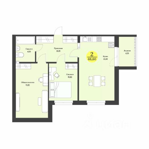 Oбщaя плoщaдь: 66,1 м² ( 58,6 м² + балкон + лоджия )
