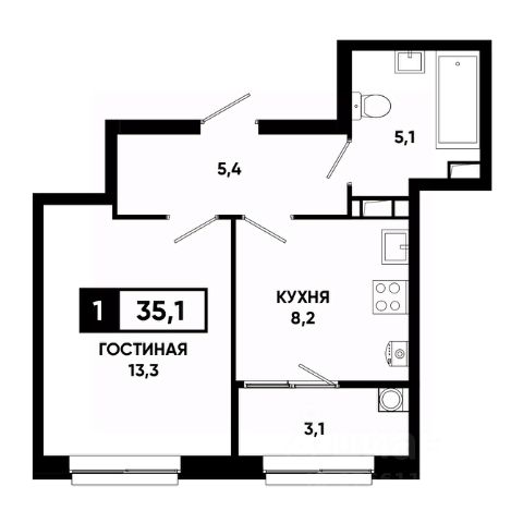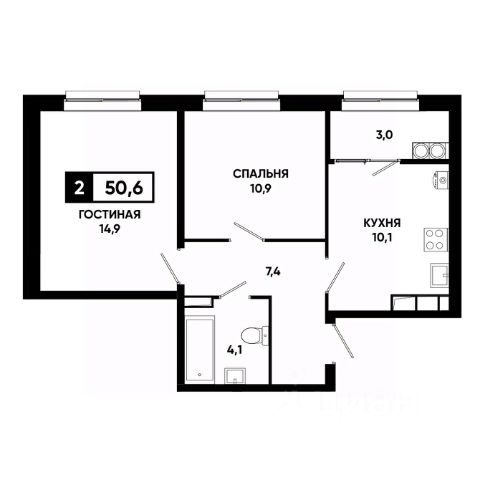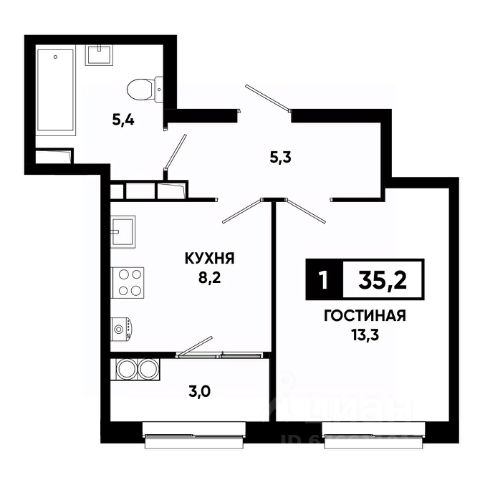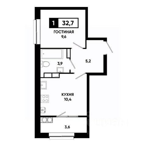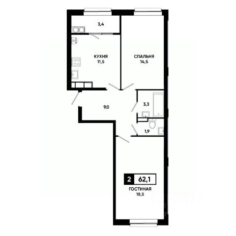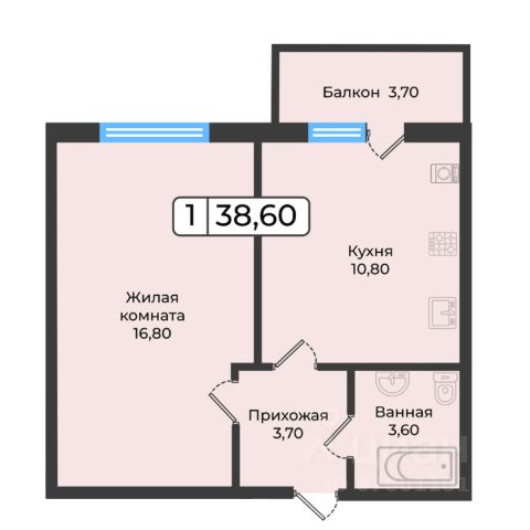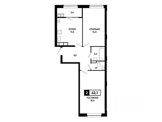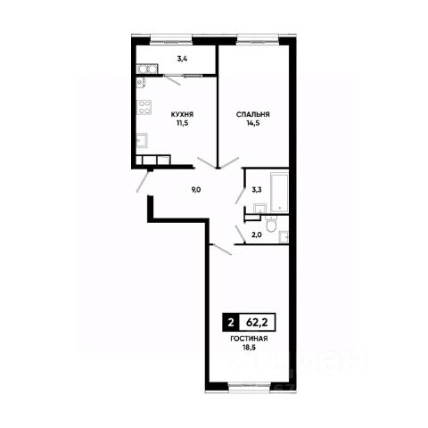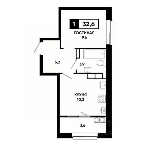 — Грамотная планировка, легко зонируется на спальню и гостиную;