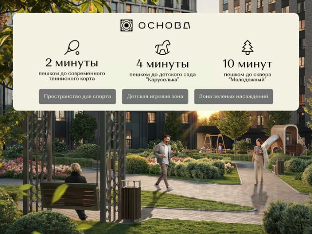 — Современные детские площадки, канатные зоны, горки, городки;