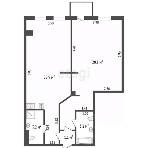 - Высокие потолки 3,00 м.