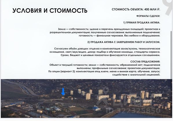 Отличная инвестиционная возможность! Торговый центр расположенный на первой линии при въезде в город, в самом востребованном районе. Общая площадь помещения — 700 кв.м., земля — 9 соток, все в собственности. Объект включает...