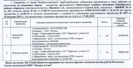 Лот6 Нежилое здание, 1997 г.п., кадастровый 22:33:031003:213, площадь 36 кв.м., количество этажей 1, и земельный участок, назначение земли сельскохозяйственного назначения для ведения садоводства, кадастровый 22:33:031003:188...
