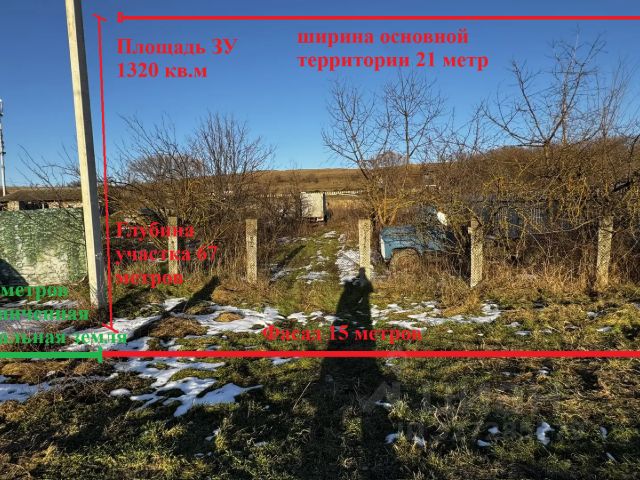 Земельный участок 1320 кв.м в собственности, лицевой фасад 15 метров, глубина 67 метров, задний фасад 21 метр. Доступ к земельному участку также возможен с торца, вдоль участка имеется неразграниченная территория под проезд. За участком имеется территория, которую возможно использовать для расширения. К участку подведено электричество, есть колодец, имеется возможность подключения газа.