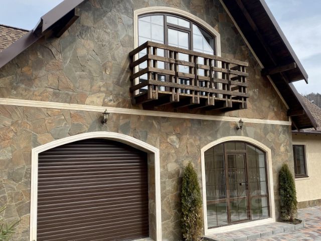 Дом снаружи и внутри выполнен в стиле шале и кантри. Акцент сделан на комфорт и простоту с эстетическими акцентами.