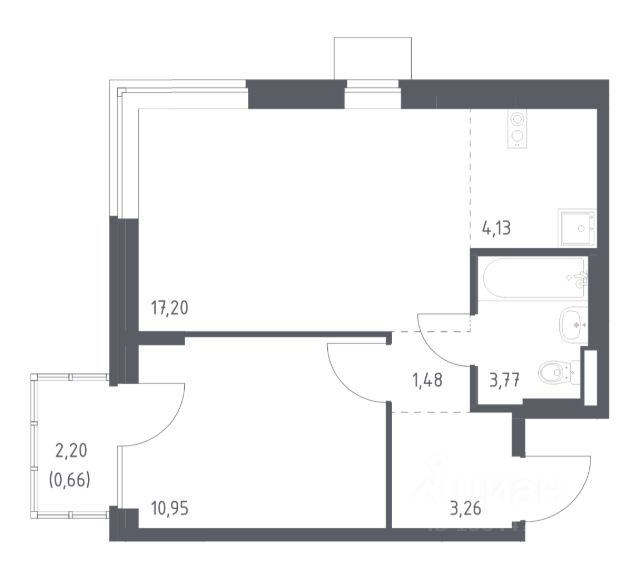 Студия · 21,3 м² · 2/46 этаж