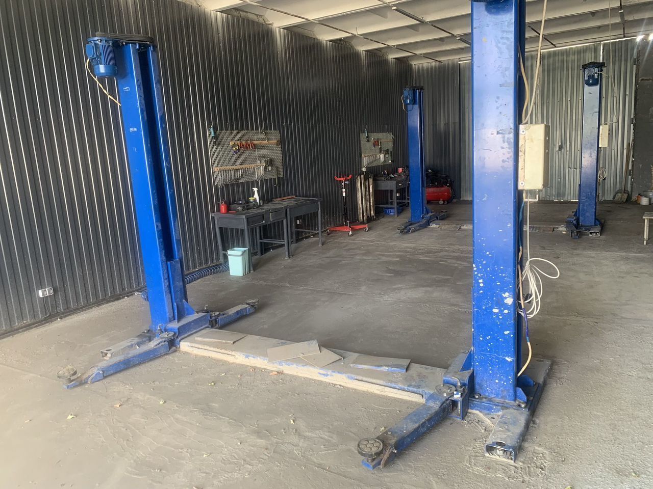 бокс на два подъемника со всеми инструментами, ключи гайковерт компрессора и т.д. В впереди сервисом большая парковка, сервис сквозной также на задней территории имеется парковка и свободная территория, есть отдельные ворота для заезда на заднюю территорию также в помещении имеется шиномонтаж совсем необходимым оборудованием,