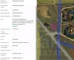 Земельный участок с кадастровым номером 26:28:000000:731 площадь 1137 по адресу Российская Федерация, Ставропольский край, Степновский район, поселок Верхнестепной, ул. Промышленная 1 А